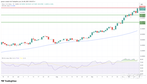 【华通白银网10月9日讯】•金价继续上涨,创下新高。