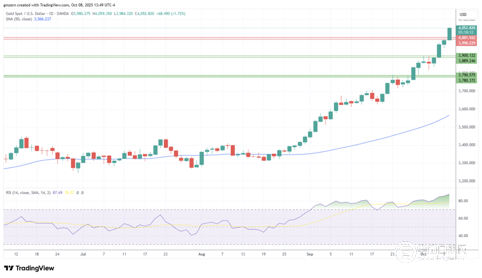 金价攀升至重要心理关口4000美元上方,继续强劲反弹。