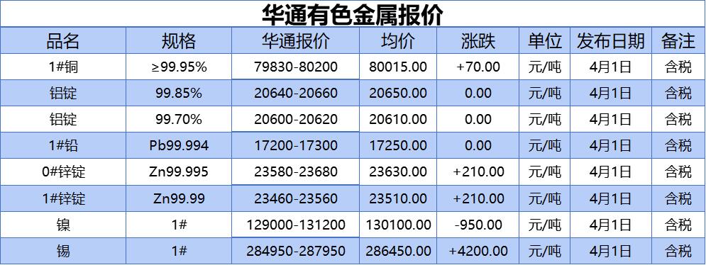 上海华通铂银:华通有色金属报价(2025-04-01)